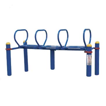 鍛煉方法:雙手抓住鞍馬訓練器的兩側(cè)把手,把身體撐起,在其上做各種回旋轉(zhuǎn)、擺動、平移運動,以次鍛煉臂力、軀